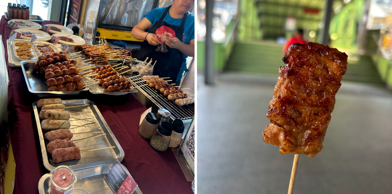 まずはムーピン(甘タレに漬けられた豚串2本ともち米で30バーツ)を食べ、ちょっと観光。