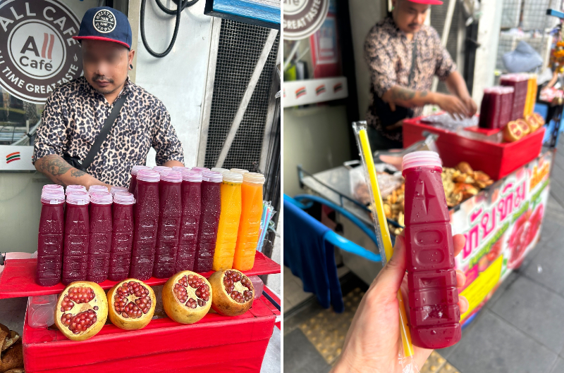 最後にザクロジュース(50バーツ)で〆て、大満喫し空港へ戻る。